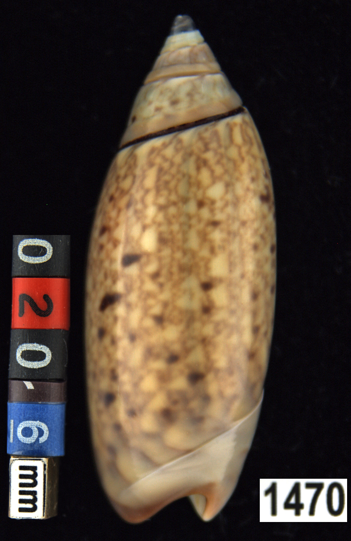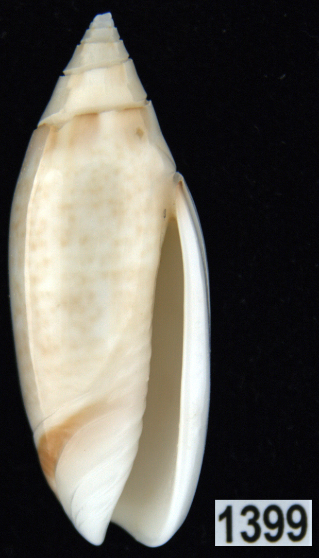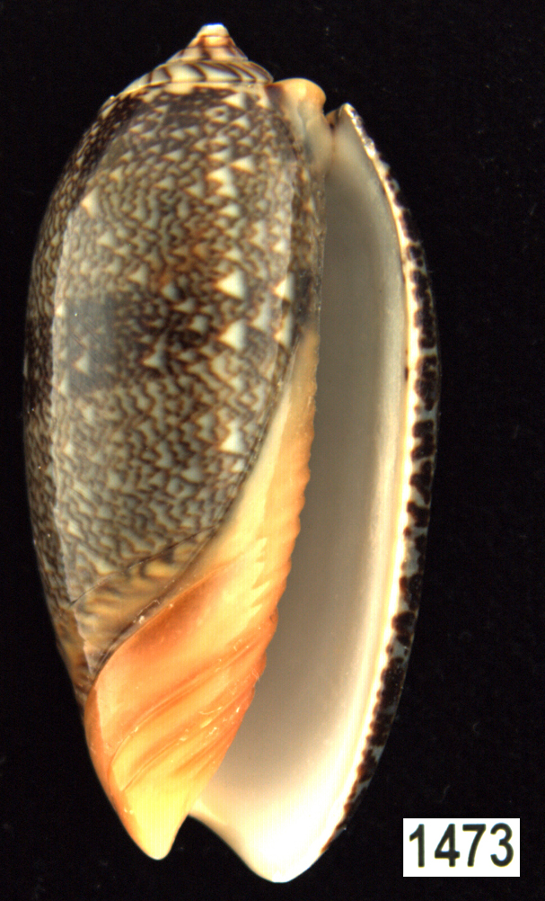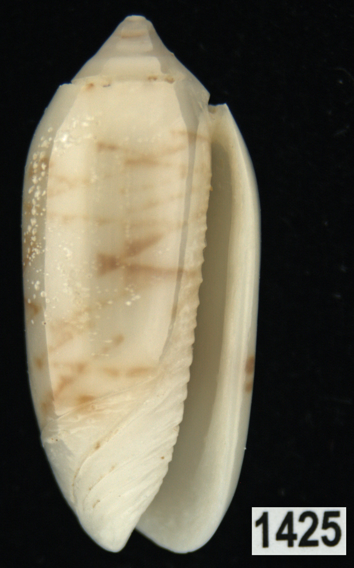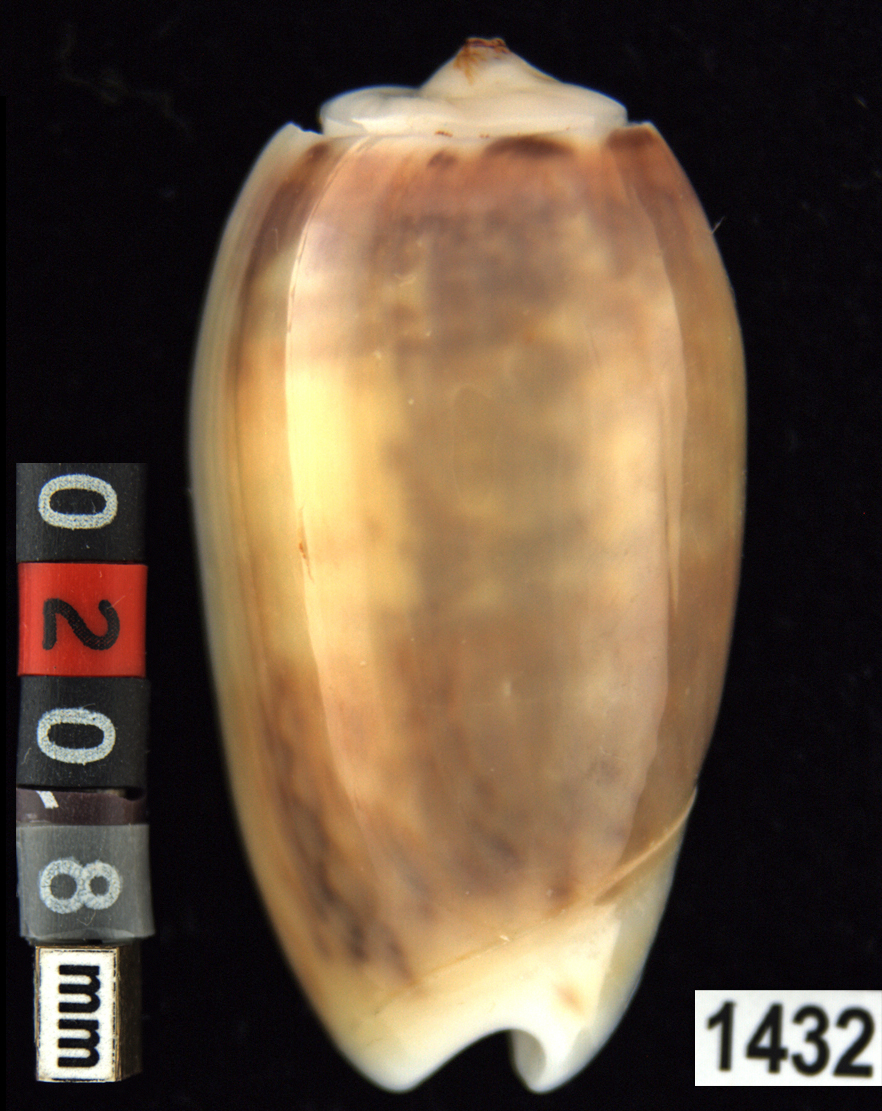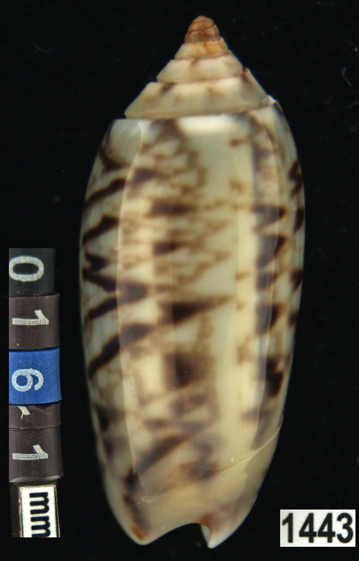 |  Oliva (Americoliva) venulata f. cumingii Reeve, 1850 La Paz, Baja California, Mexico |