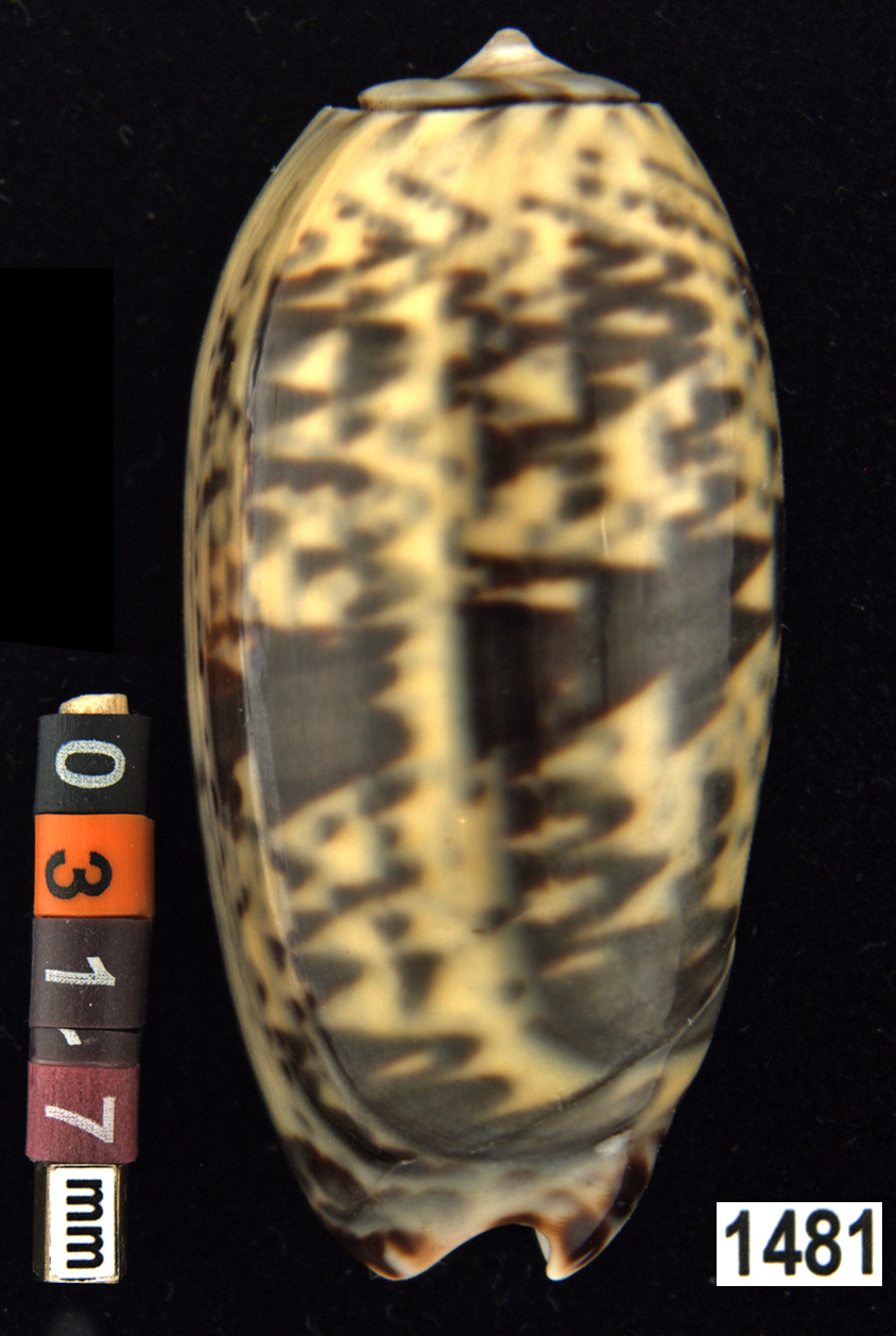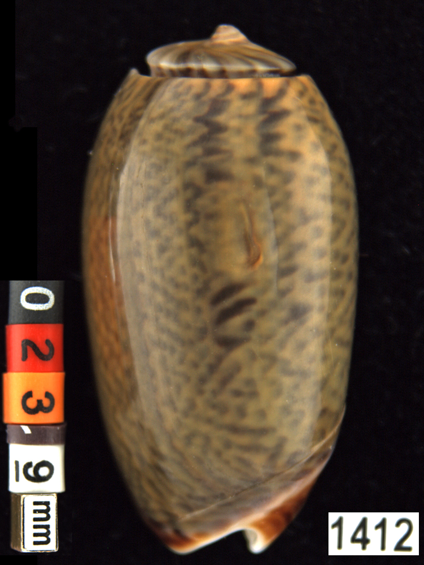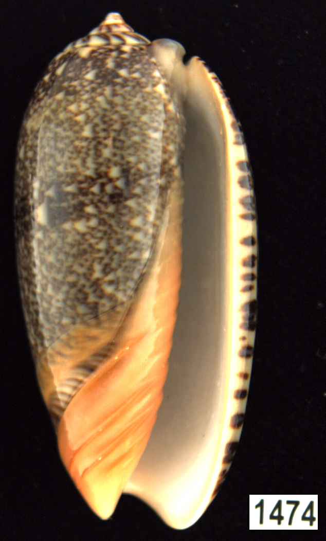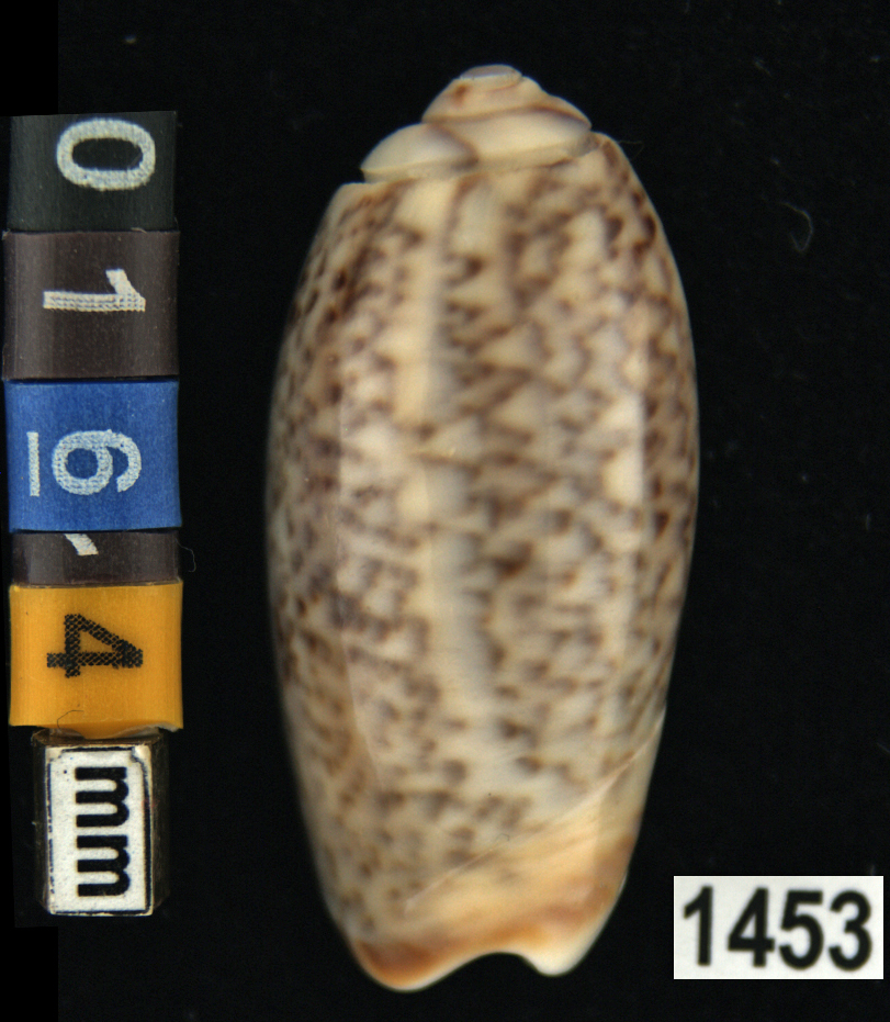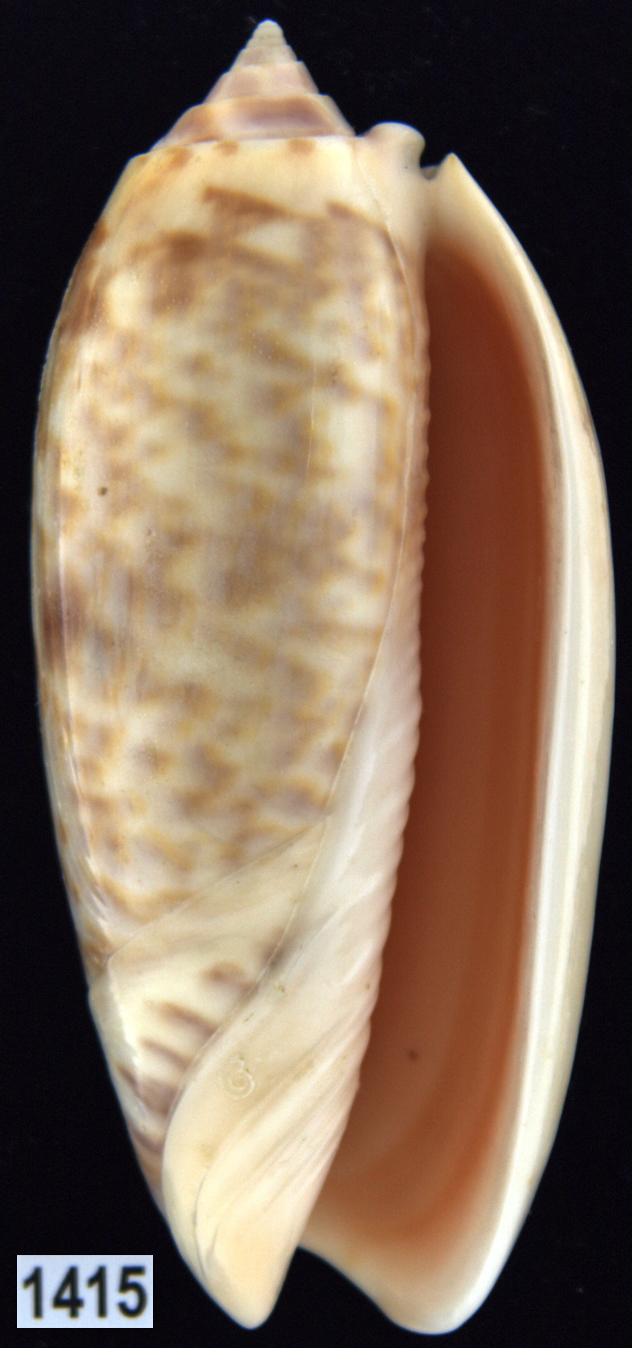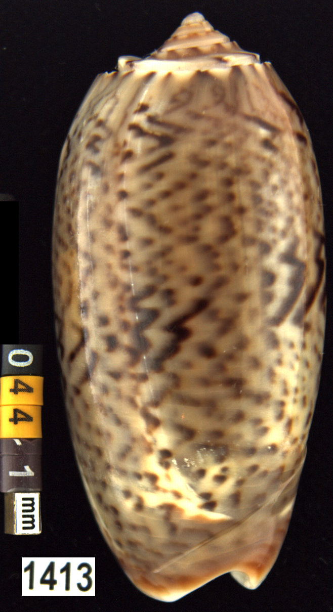 |  Oliva (Americoliva) venulata f. cumingii Reeve, 1850 La Paz, Baja California, Mexico |