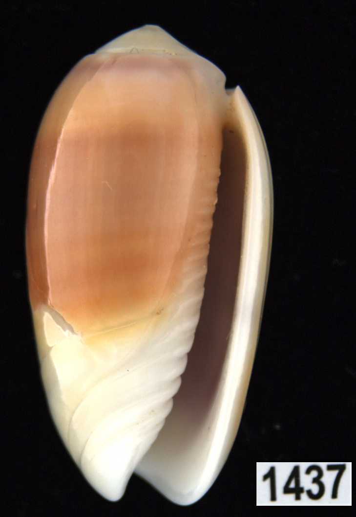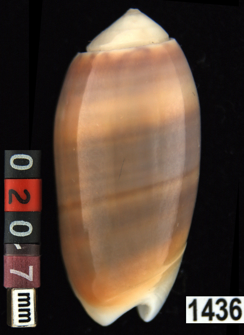 |  Oliva (Annulatoliva) amethystina f. carnicolor Dautzenberg, 1927 Batangas Bay, Luzon, Philippines |