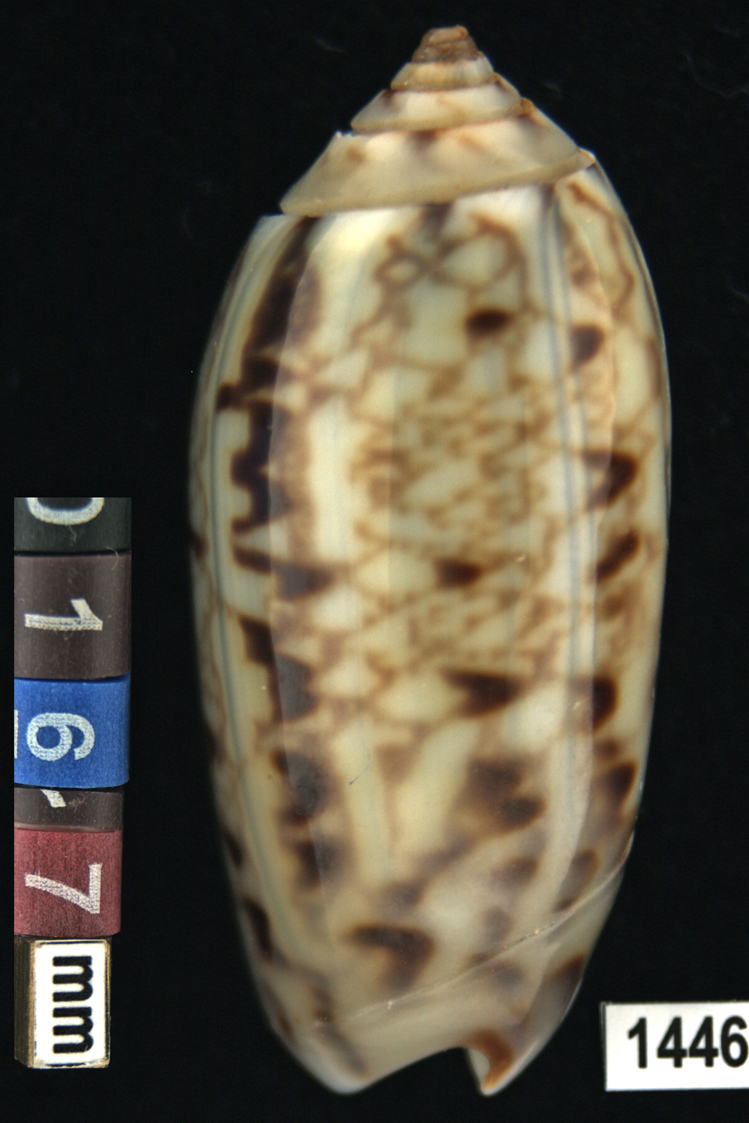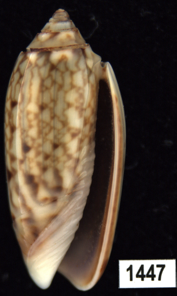 Oliva (Americoliva) venulata f. cumingii Reeve, 1850 - (Click thumbnails to enlarge picture) |