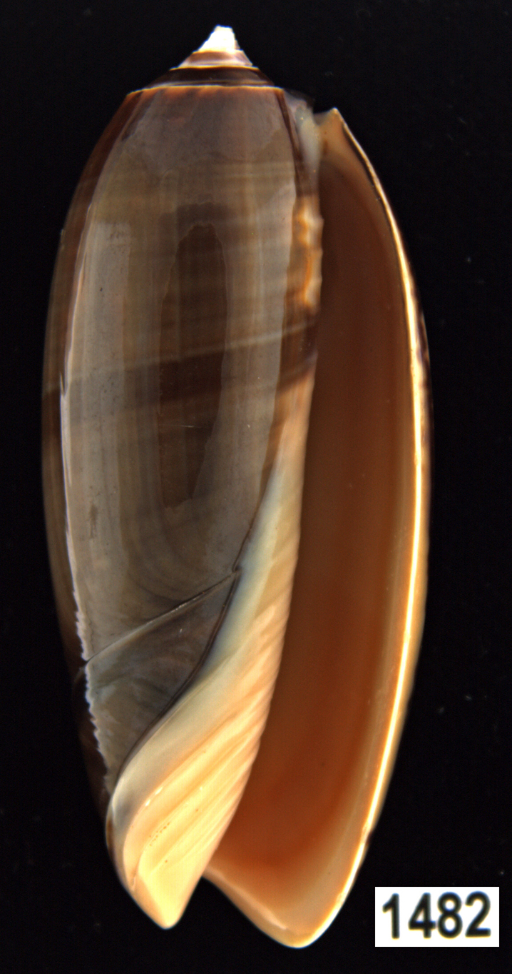 |  Oliva (Americoliva) violacea Marrat, 1868 Bay of Conception, Baja, Mexico |