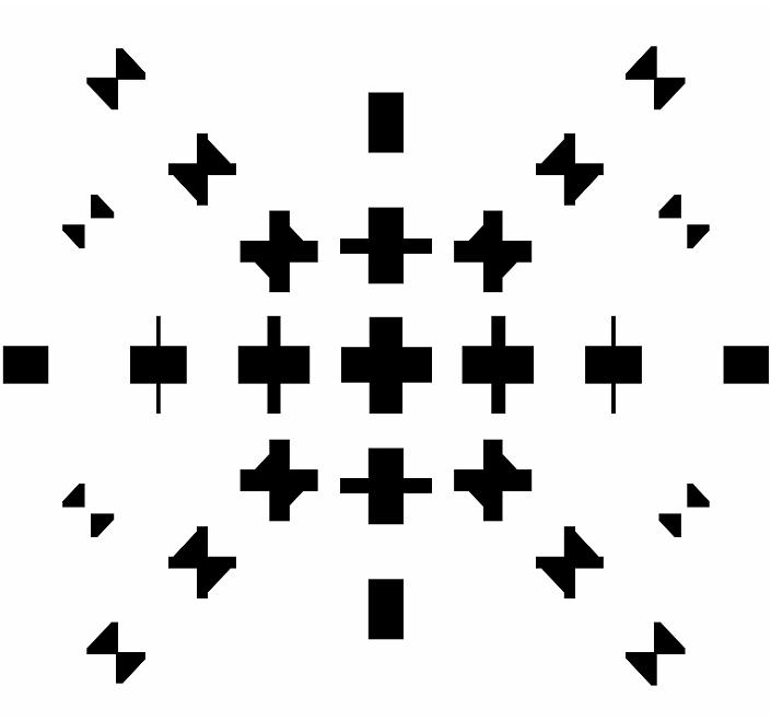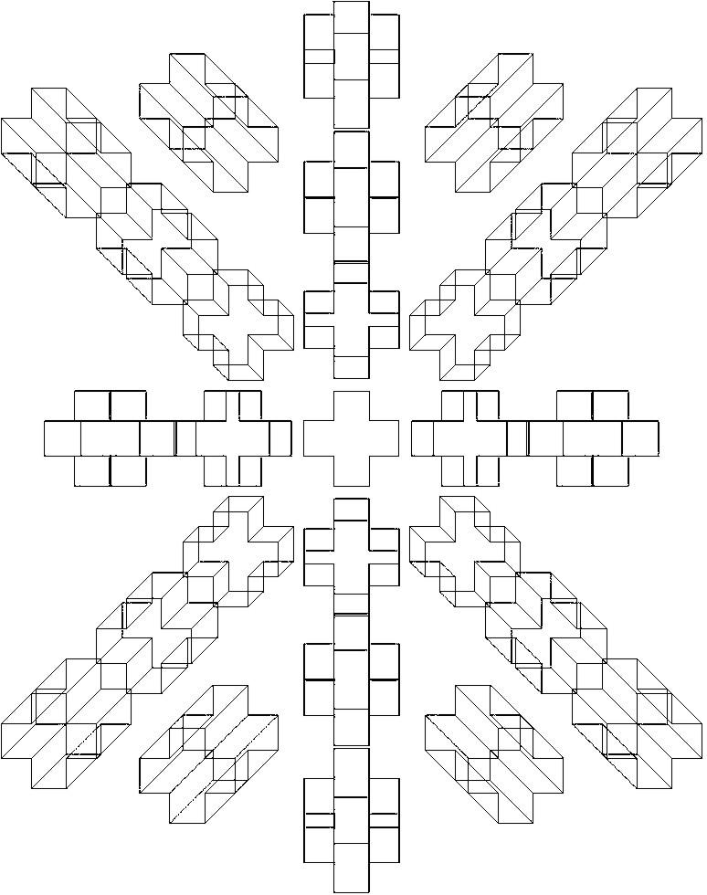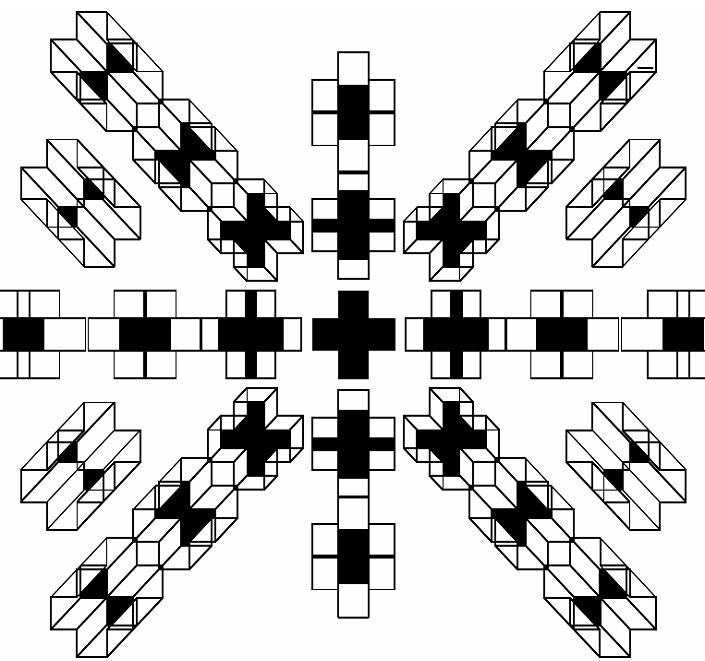 Il fondo di una scatola (o recinto) a forma di croce, visto da angoli differenti. |
