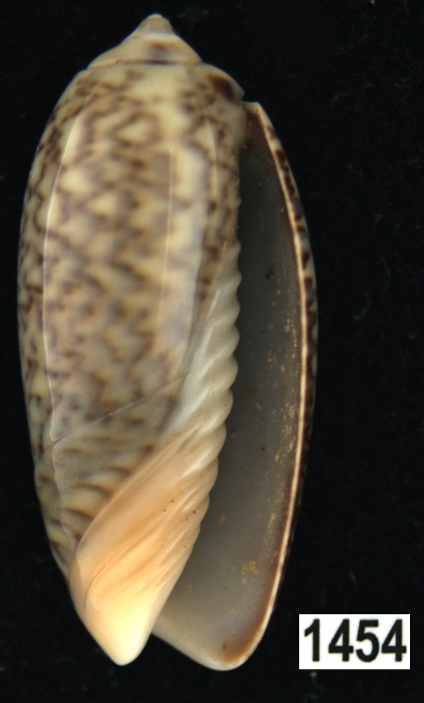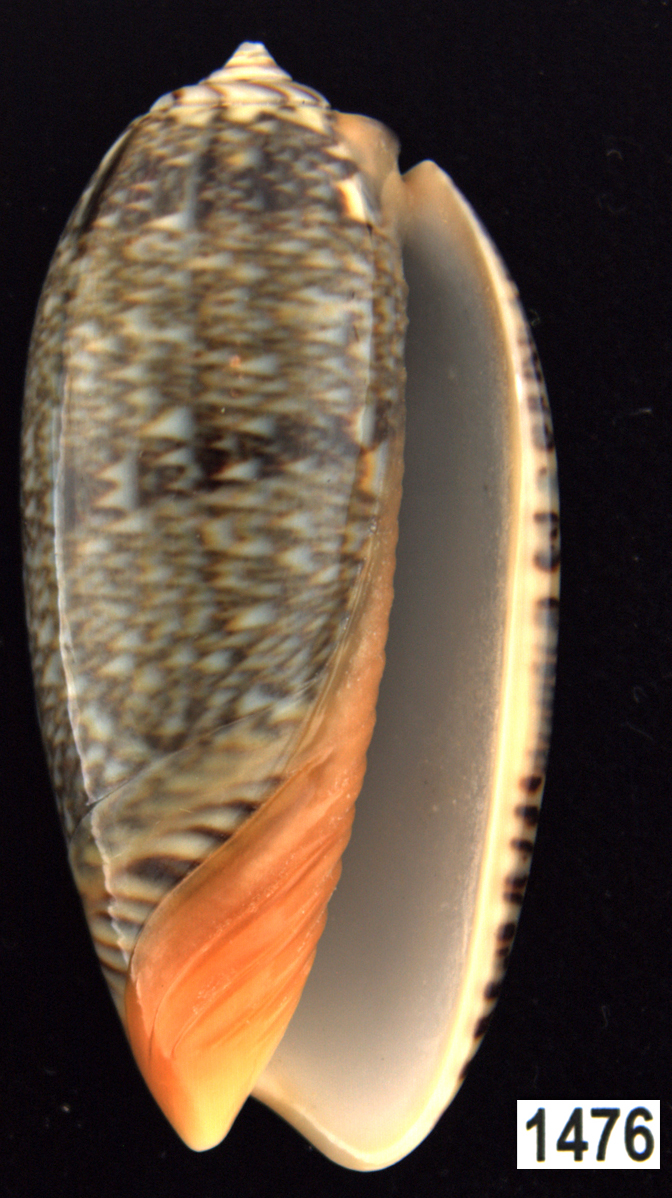 |  Oliva (Americoliva) venulata f. cumingii Reeve, 1850 La Paz, Baja California, Mexico |